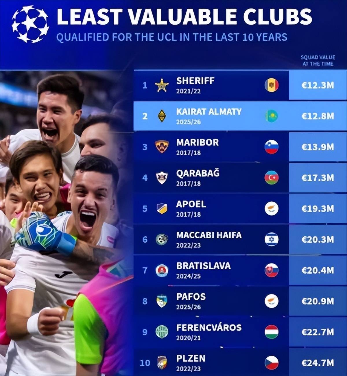 就球员身价而言,阿拉木图凯拉特的德转市值为1273万欧元,而中超的申花市值则为1383万欧元。尽管如此,凯拉特的实力仍然偏弱。在欧冠的首场比赛中,他们以1比4不敌葡萄牙体育,尽管在第86分钟扳回一球,但整体实力差距显而易见。接下来与皇马的较量,他们恐怕很难找到反击的机会。