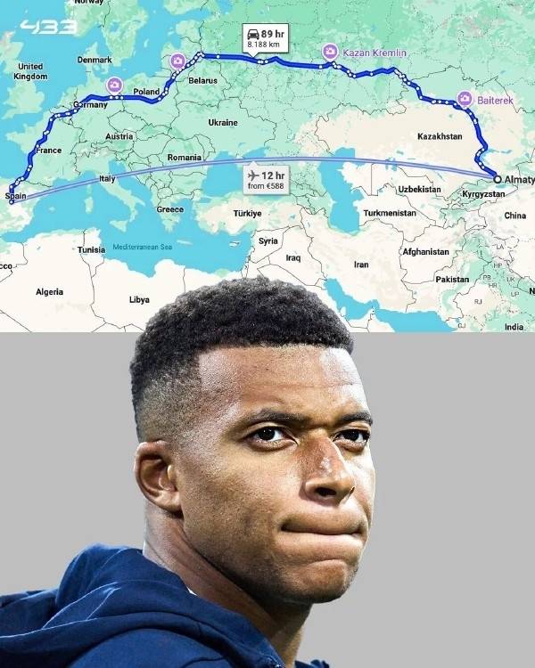 相对来说,皇马从西班牙前往阿拉木图的航程要远得多,达到了6411公里,飞行时间接近12小时,是从北京出发的两倍。比起皇马的长途跋涉,我们从新疆出发,哪怕是坐大巴,途中还能休息,绝对比皇马的飞行更舒适。