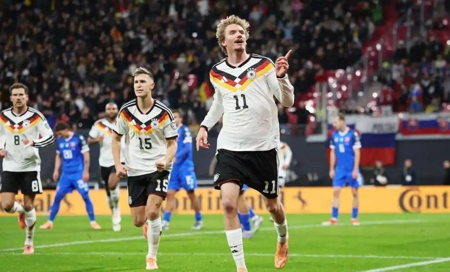 五大联赛,五大联赛直播,英超直播,西甲赛程,意甲比分,德甲预测,法甲分析/全网最全五大联赛资讯平台,涵盖英超、西甲、德甲、意甲、法甲直播入口、赛程积分、实时比分与专家预测分析,手机电脑均可访问!在世欧预选赛的关键战中,德国队以6-0大胜斯洛伐克,成功锁定了2026年世界杯的正赛席位。这场酣畅淋漓的胜利中,23岁的中锋沃尔特马德成为了最亮眼的球员之一。比赛开始仅18分钟,他就用一记头球为德国队破门,帮助球队早早取得领先,并以自己的关键表现延续了近期的火热状态。