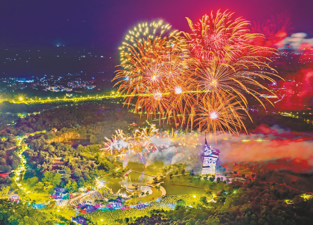 国庆中秋假期,绚烂烟火绽放南宁园博园,吸引大批游客。记者 潘浩 摄(图源:南宁市融媒体中心)