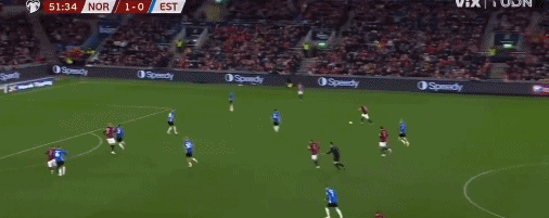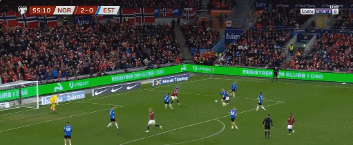 比赛开始后,挪威就展现出不俗的进攻状态;第2分钟,贝格角球进攻当中转身抽射,皮球被防守球员挡出;第19分钟,努萨沿着左路自信内切攻门,皮球同样被挡出。第25分钟,努萨左路传中,哈兰德斯洛特双双错过抢点机会;第43分钟,哈兰德中路接应包抄头球攻门被海因化解。上半场比赛面对爱沙尼亚的铁桶阵,挪威13次射门没有任何收获。