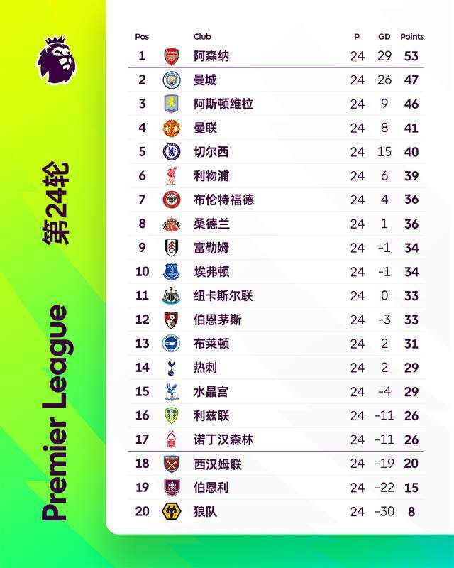 英超24轮战罢,阿森纳以6分的优势力压曼城领跑,还多出3个净胜球,阿森纳在本赛季的英超争冠路上已经取得较大优势。以目前曼城疯狂掉链子的情况,阿森纳夺得本赛季英超冠军或许已经是大概率的事情。